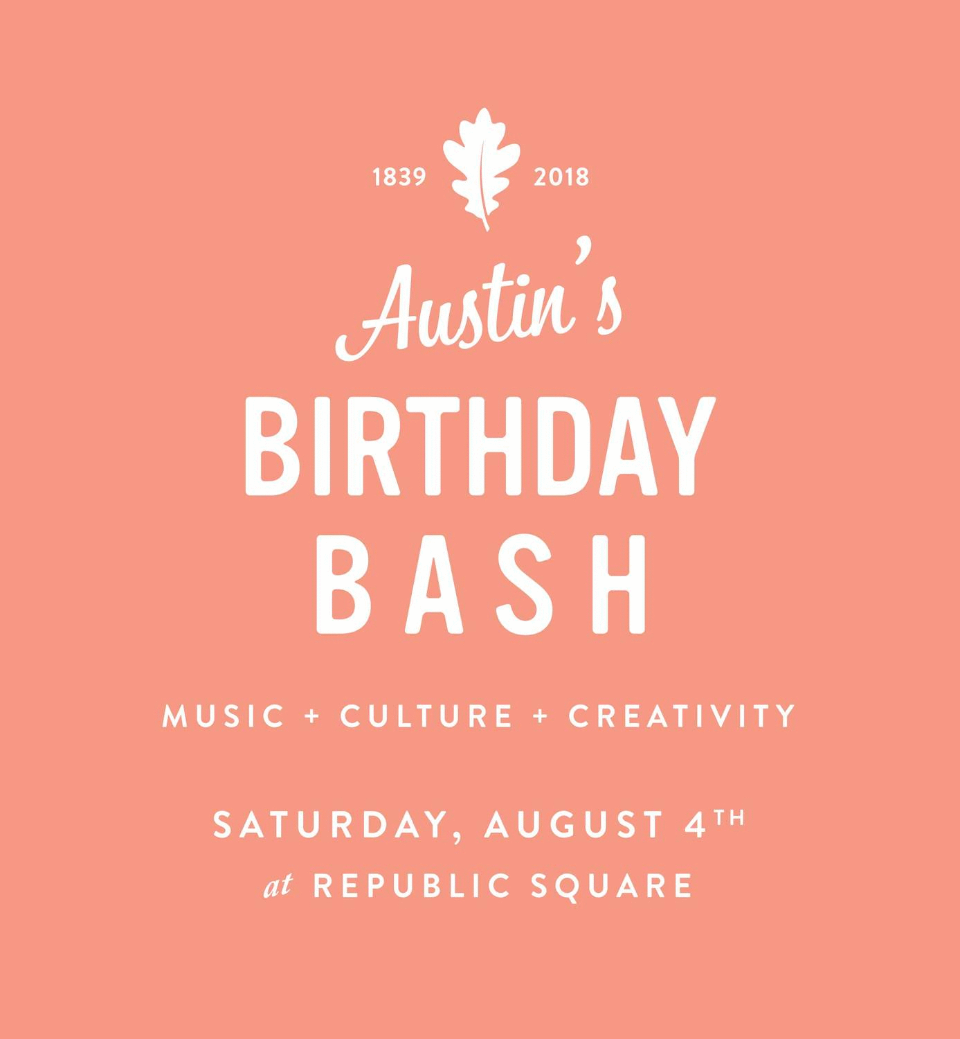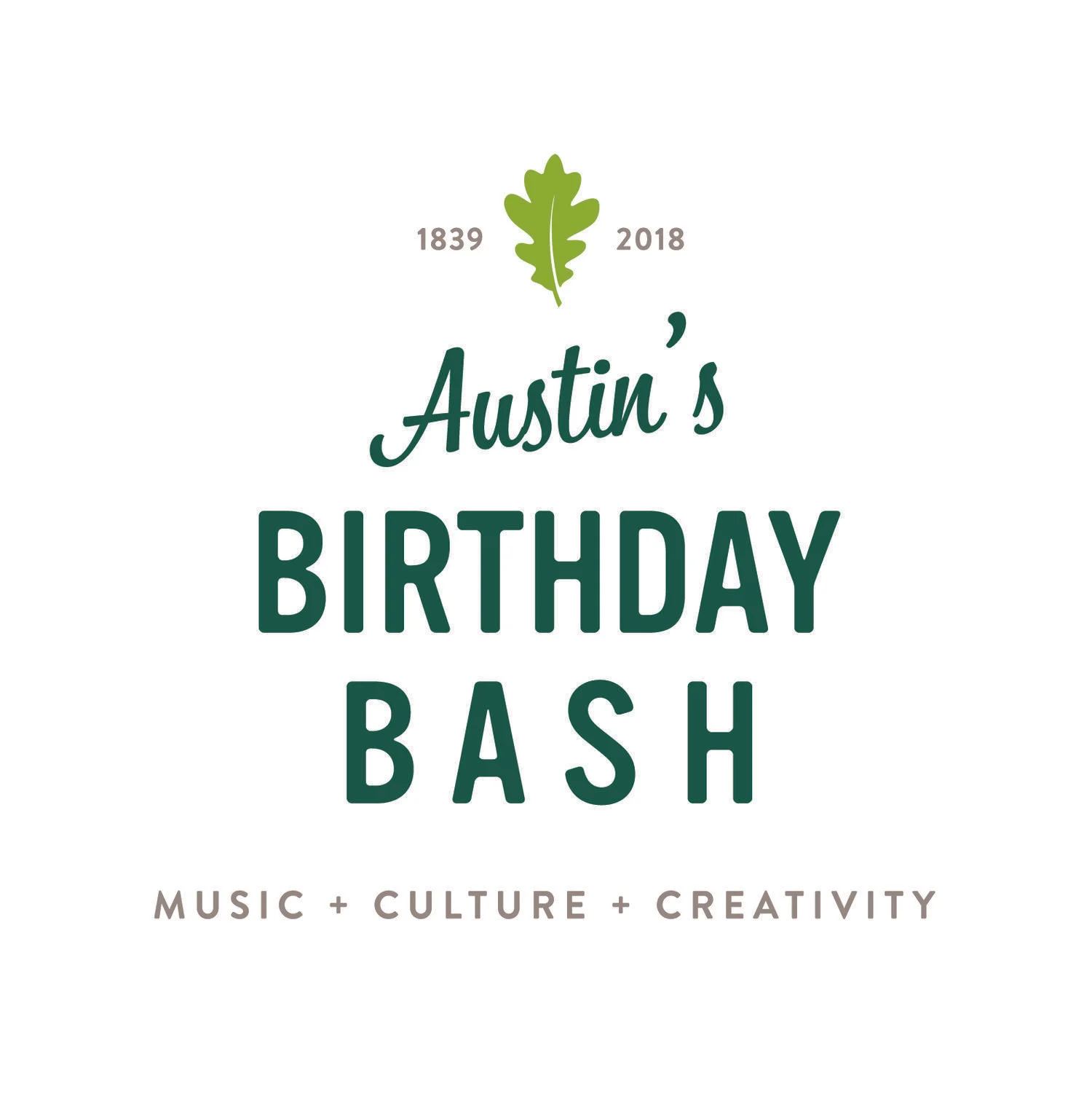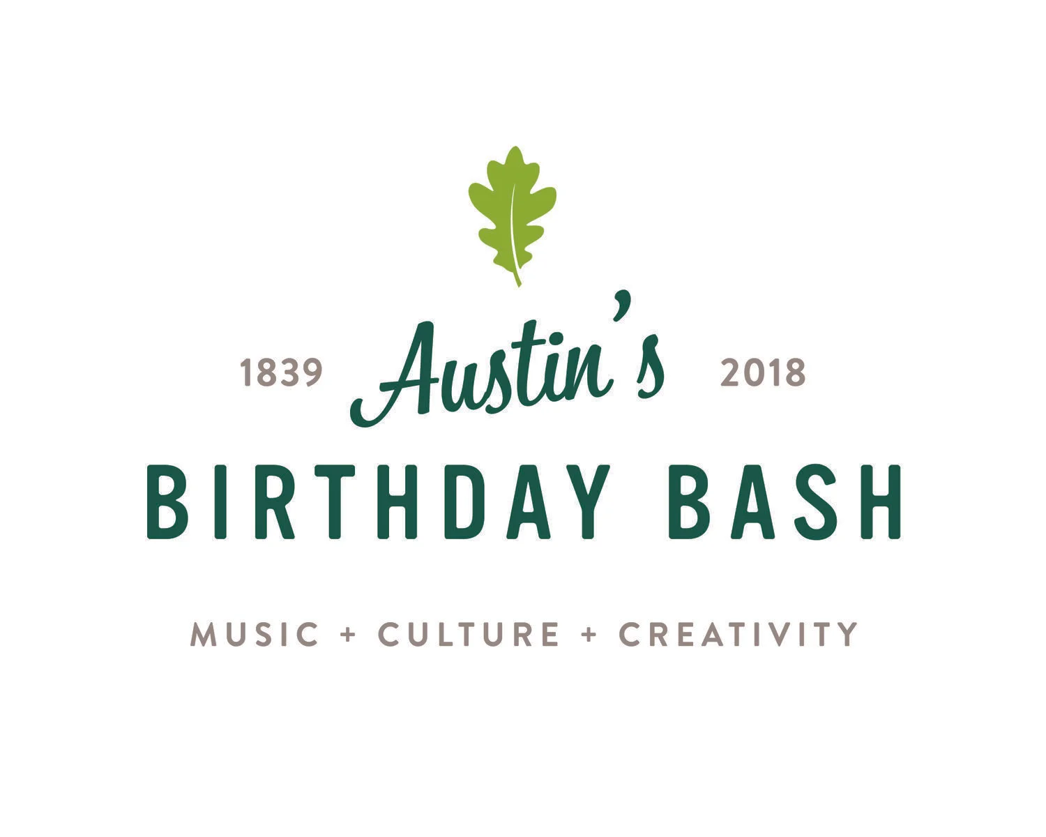The Austin’s Birthday Bash logo is a clean and timeless wordmark for the newly established annual event. A leaf icon gives homage to the Auction Oaks where the first lots of the city of Austin were auctioned. The tagline “Music + Culture + Creativity” drives home the goal of the event — bringing together the creativity of Austin’s many cultures.